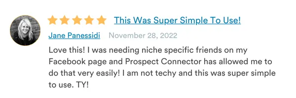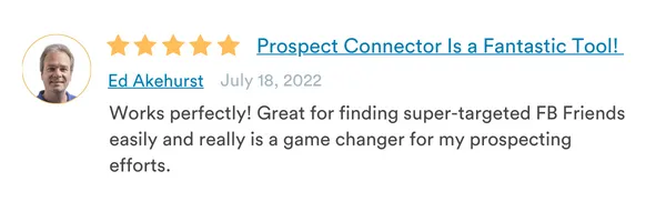 Prospect Connector mines specific FB groups you designate, other people’s friend lists, your suggested friends, and even comments on ANY FB post or ad!